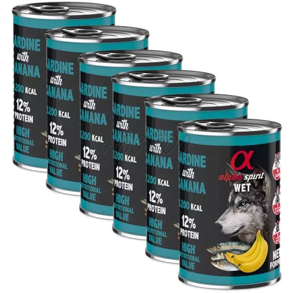 Alpha Spirit Dog Wet - szardínia és banán 6 x 400 g